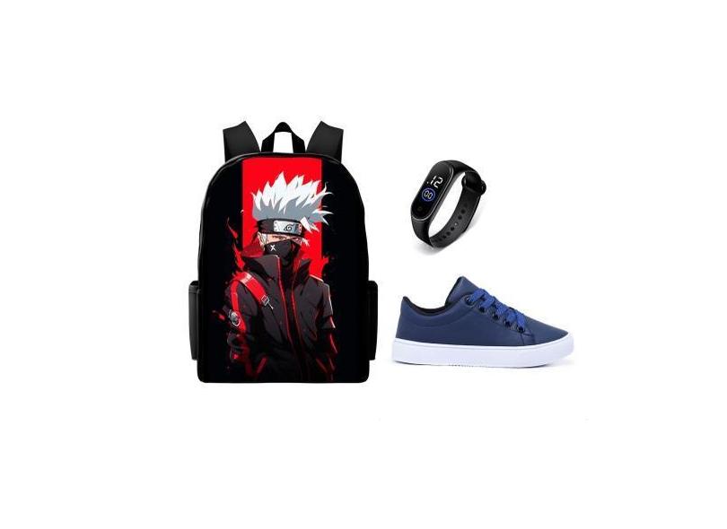Bolsa Estampada Masculina Mais Tenis Casual E Relogio Digital Conjunto