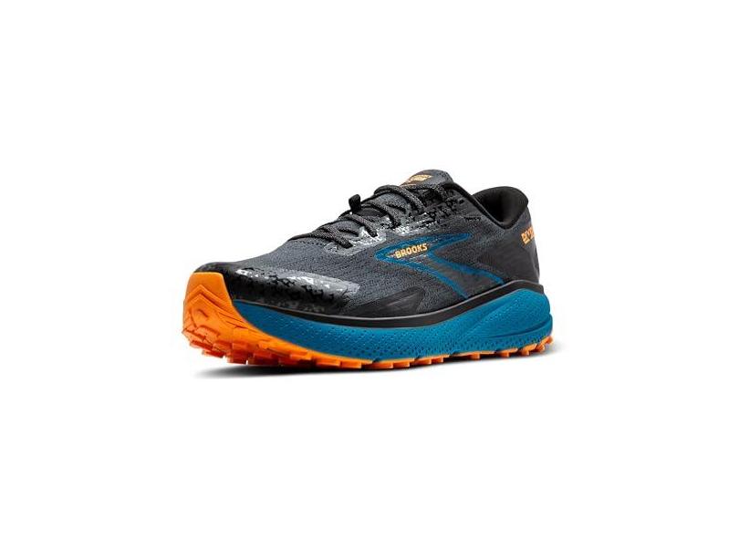 Brooks Tênis masculino Divide 5, ébano/azul mosaico/laranja, 42