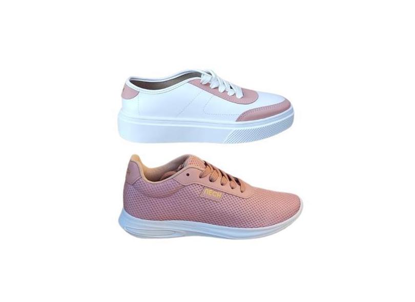 Combo dois tenis feminino casual social academia branco rosa - Nech, 3