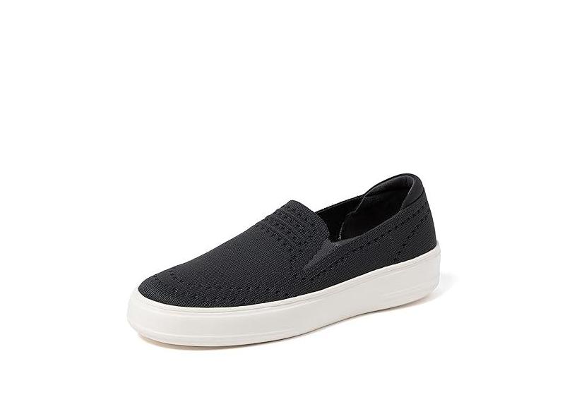 Dearfoams Tênis feminino Sophie sem cadarço, leve, respirável, confortável, com suporte de arco, Preto liso, 35