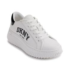 DKNY Tênis feminino com cadarço, Peso brilhante/preto, 34