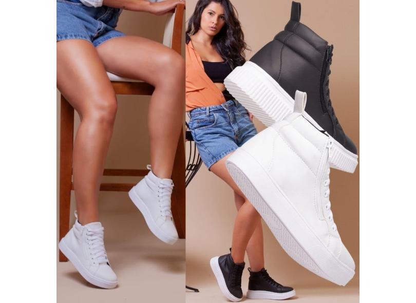 O menor preço encontrado no Brasil para Dois Tênis Femininos De Cano Longo: Um Preto Pkataforma Clássico E Um Branco Elegante. atualmente é R$ 159,00.