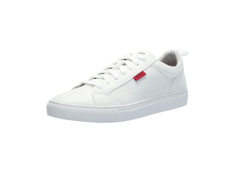 HUGO Tênis masculino Essential Two Tone Suede Low Top, Lychee White, 7