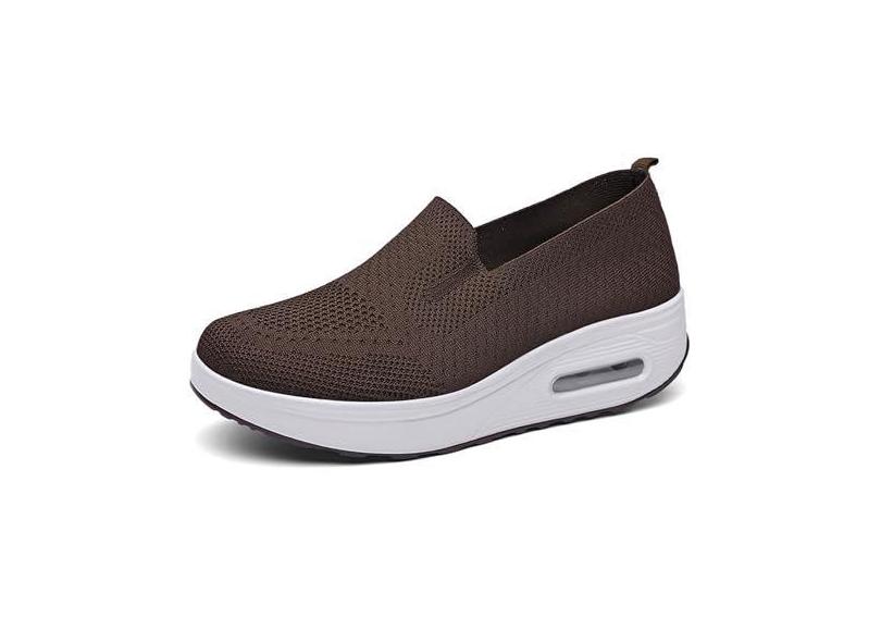 Jueshanzj Tênis feminino de malha respirável com fundo grosso, Marrom, 35