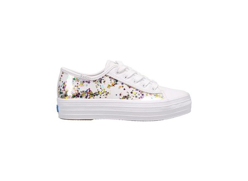 Keds Tênis feminino Triple Up-Glitter Under Glas (criança pequena), Branco/Glitter, 18
