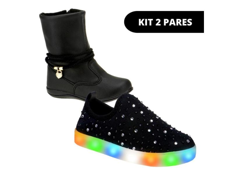 O menor preço encontrado no Brasil para Kit 2 Bota e Tênis Led Feminino Infantil de Menina Escolar-Feminino atualmente é R$ 209,82.