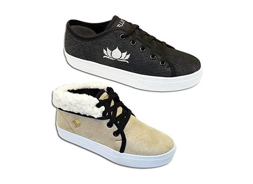 Kit 2 Pares Tenis Casual Feminino Trilupy Preto e Creme