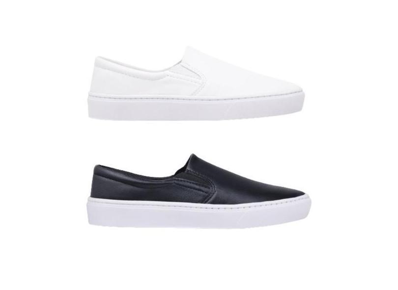 Kit 2 Pares Tenis Feminino Slip Branco E Preto Casual Basico E Confort