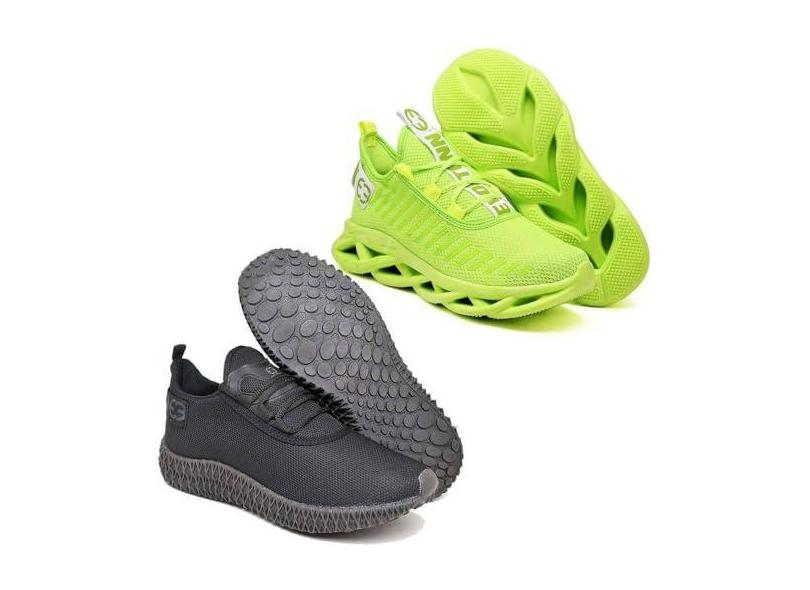 Kit 2 tênis Esportivo Trança + Colmeia Verde e Black 43