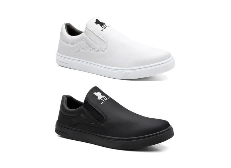Kit 2 Tenis Slip On Polo Plus Original Masculino Casual Liso Preto