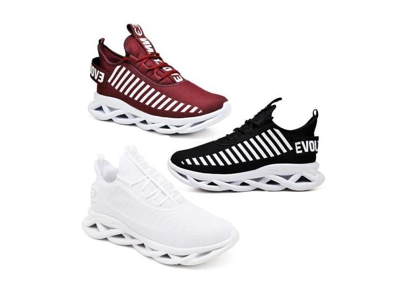 Kit 3 Tênis Trança Preto Branco, Bordo e White, 35