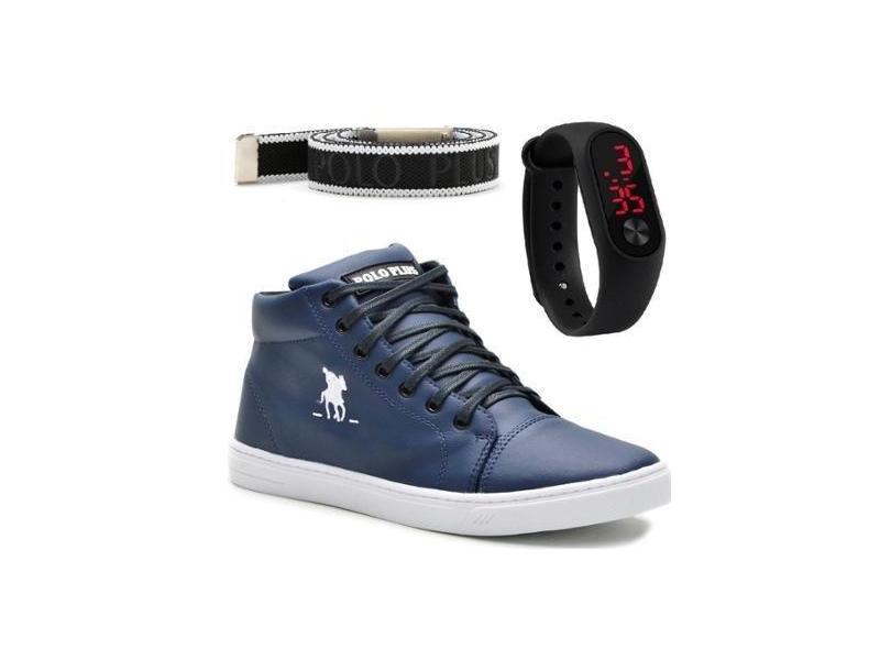 Kit Com Tênis Cano Médio Masculino + Relógio Digital E Um Cinto-Masculino
