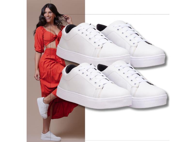 Kit De Tênis Femininos Casuais Branco Estilo Descontraído E Confortável Em Qualquer Ocasião.