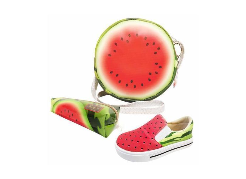 O menor preço encontrado no Brasil para Kit Infantil Bolsa, Tênis E Estojo Melancia Redonda, Magicc Kids atualmente é R$ 115,71.