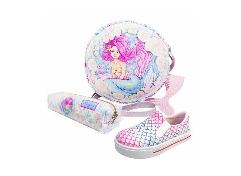 O menor preço encontrado no Brasil para Kit Infantil Bolsa, Tênis E Estojo Sereia E Conchas, Magicc Kids atualmente é R$ 110,90.
