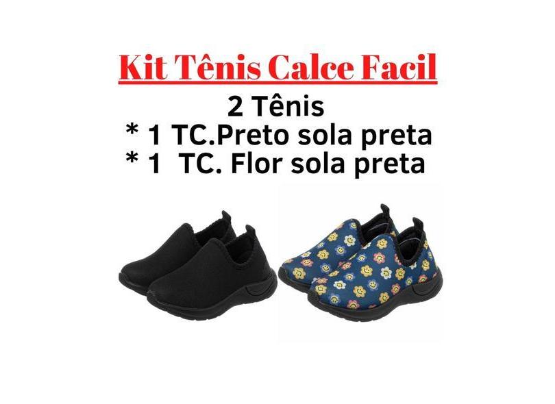 Kit Infantil Tenis Calce Fácil Menina Preto Sola Preta E Flor Sola Pre