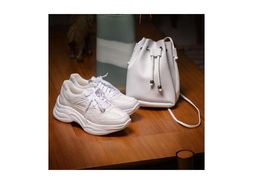 Kit Sneaker Tênis Feminino Chunky Sola Alta Com Bolsa Saco Transversal
