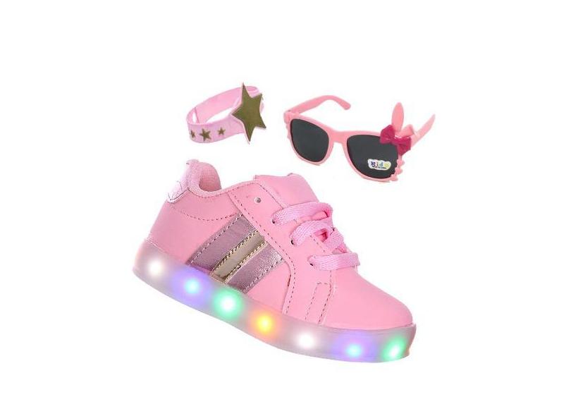 Kit Tenis De Menina Com Luzinha Que Pisca Calçado De Criança + Oculos