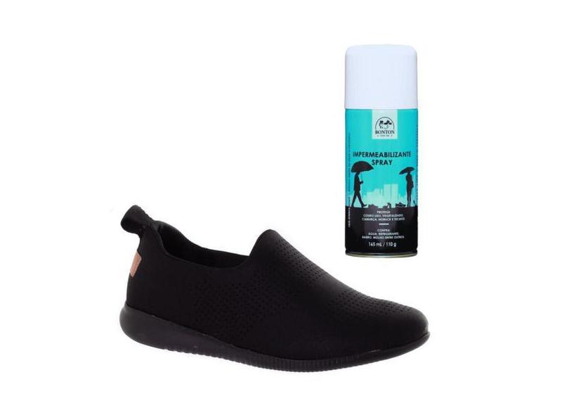 Kit Tenis Feminino Preto Slip On Usaflex + Impermeabilizante