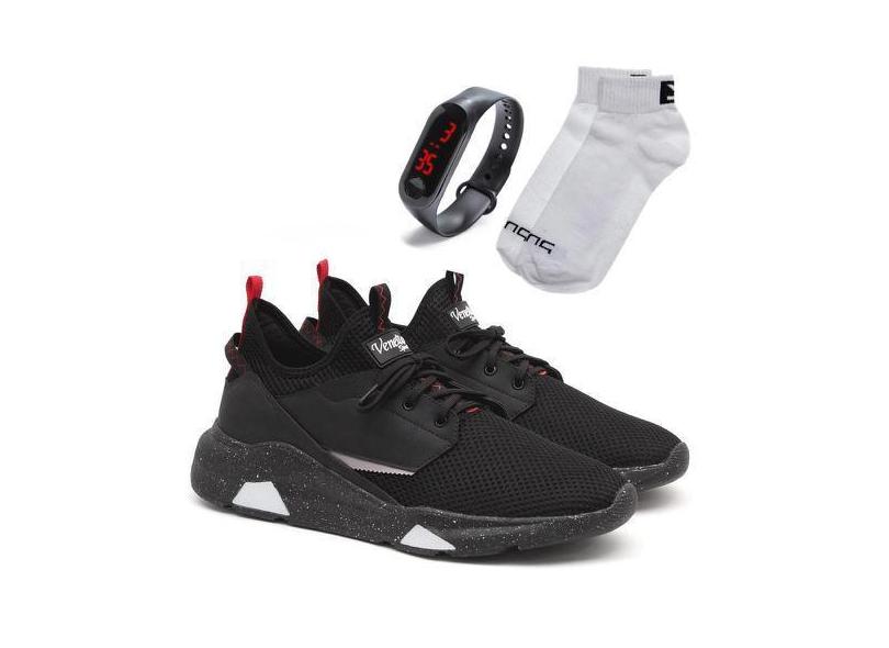 Kit Tênis Meia Venetto Caminhada + Relógio Digital + Meias