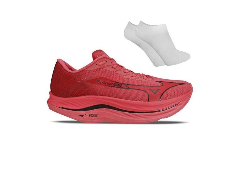 Kit Tênis Mizuno Wave Rebellion Flash 2 Masculino + Par de Meia, Verme