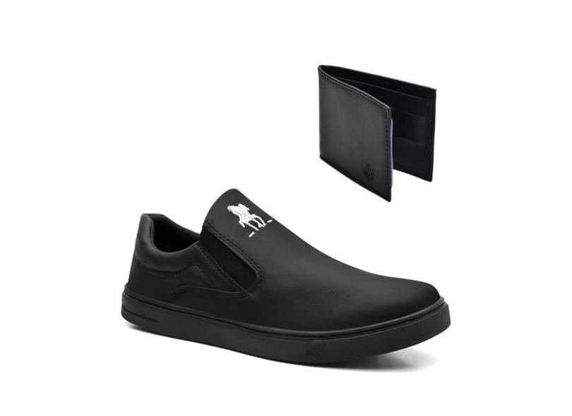 Kit Tênis Slip On Polo Masculino Extra Macio + Carteira Preto
