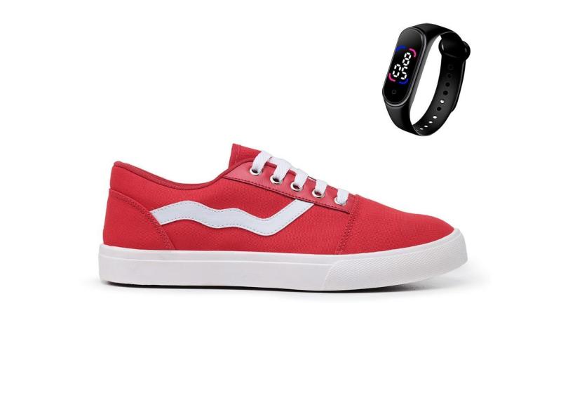 Kit Tênis Street Casual Skate + Palmilha Com Bolha em Gel + Relógio Digital Touch