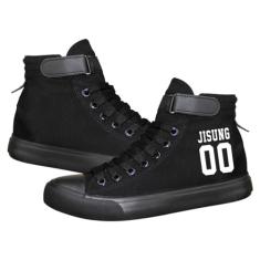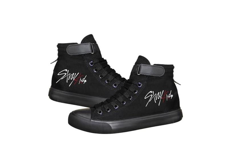 O menor preço encontrado no Brasil para KPOP StrayKids Merch Tênis Bang Chan Lee Know ChangBin Han I.N Felix HyunJin Seungmin Hiphop Sapatos de lona cano alto preto-a atualmente é R$ 389,58.