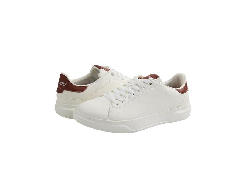 Mario Lopez Cruz – Tênis masculino moderno com cadarço, Branco/Conhaque, 41