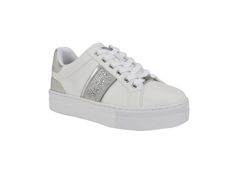 Nine West Tênis feminino Gator, Branco/Prata 141, 35