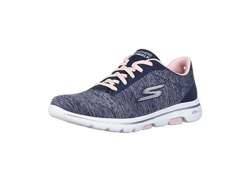 O menor preço encontrado no Brasil para Skechers Go Walk 5 True Tênis feminino, Azul-marinho/rosa, 38 atualmente é R$ 503,18.