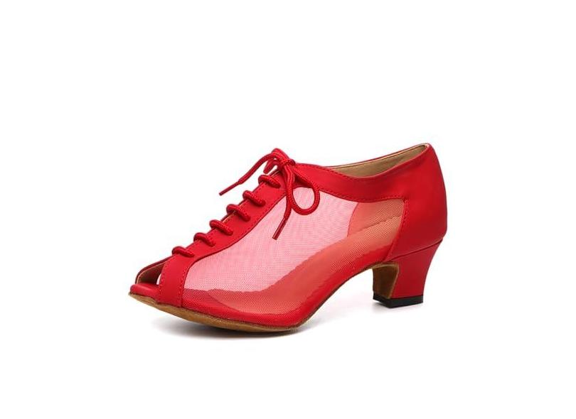 SWDZM Sapatos femininos de dança latina com cadarço salsa tango, tênis para prática de dança, modelo L595, L504 - salto vermelho, sola de camurça de 5 cm, 36
