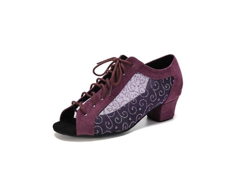 O menor preço encontrado no Brasil para SWDZM Sapatos femininos de dança latina com cadarço salsa tango, tênis para prática de dança, modelo L595, L505-salto roxo 3,8 cm - sola de camurça, 35 atualmente é R$ 277,69.