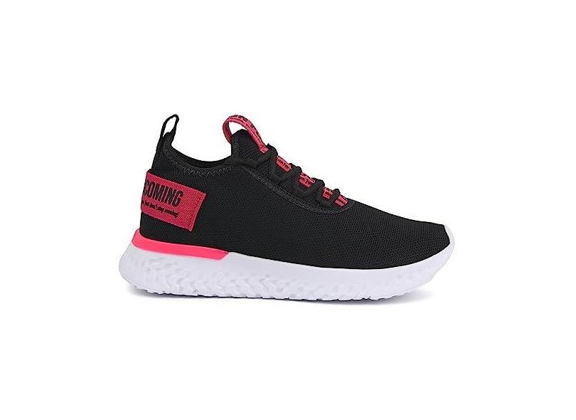 Tênis Academia Confortável Macio Corrida Feminino Masculino (35, Preto/Rosa)