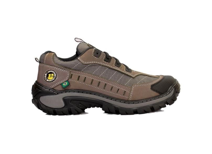 Tênis Adventure Masculino Couro Cadarço Treeking Resistente