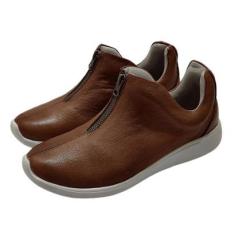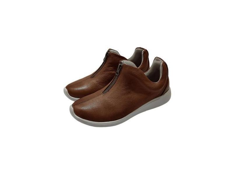 Tênis Ankle Zíper Couro de Carneiro Conhaque-Feminino