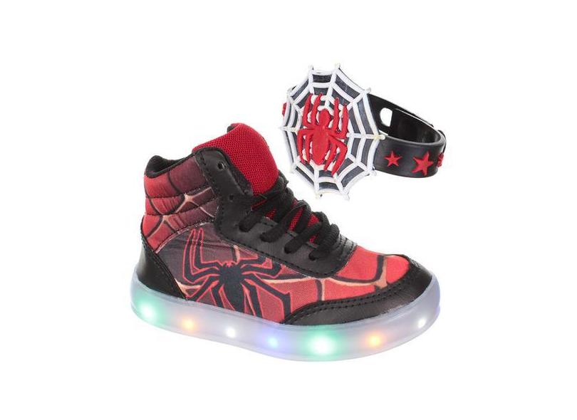 Tenis Botinha Com Luz De Led Infantil Masculino Aranha Meninos C/Puls