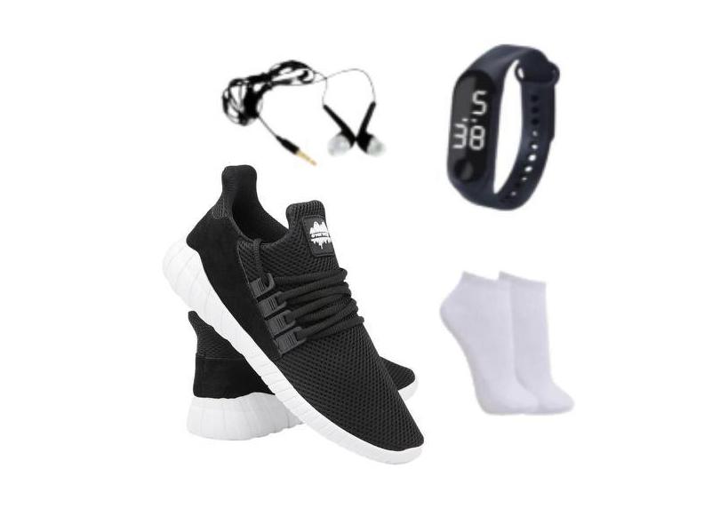 O menor preço encontrado no Brasil para Tênis Caminhada Fitness Academia + Relógio + Meia + Fone - Ever Way atualmente é R$ 148,71.