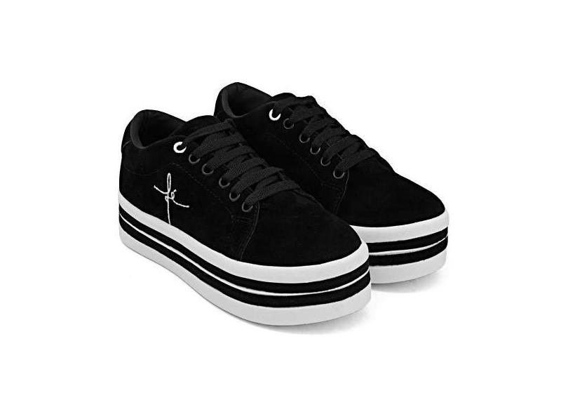 Tênis Camurça Feminino Plataforma Bordado Fé Conforto - Top Shoes