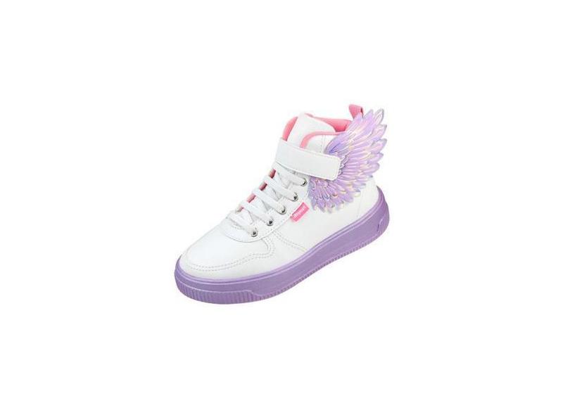 Tênis Cano Alto Branco Lilás Asa Infantil Pampili