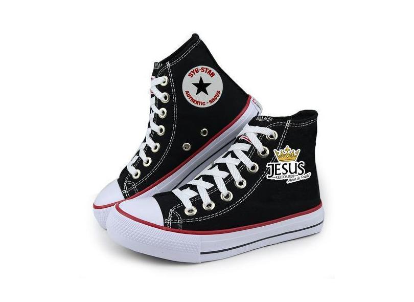 Tênis Cano Alto Unissex Personalizado Jesus Rei Dos Reis Marca Do Prof