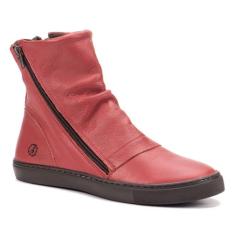 Tenis Cano Medio Em Couro Graxo Vermelho Com Sola de Borracha - Simpro