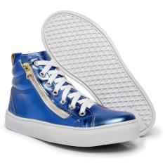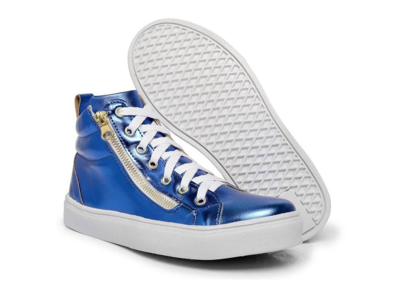 Tênis Cano Médio Metalizado Lk Store Fecho de Cadarço e Zíper