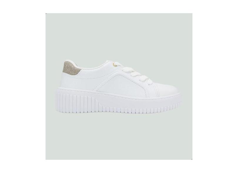 Tênis Casual Beira Rio Branco/Dourado
