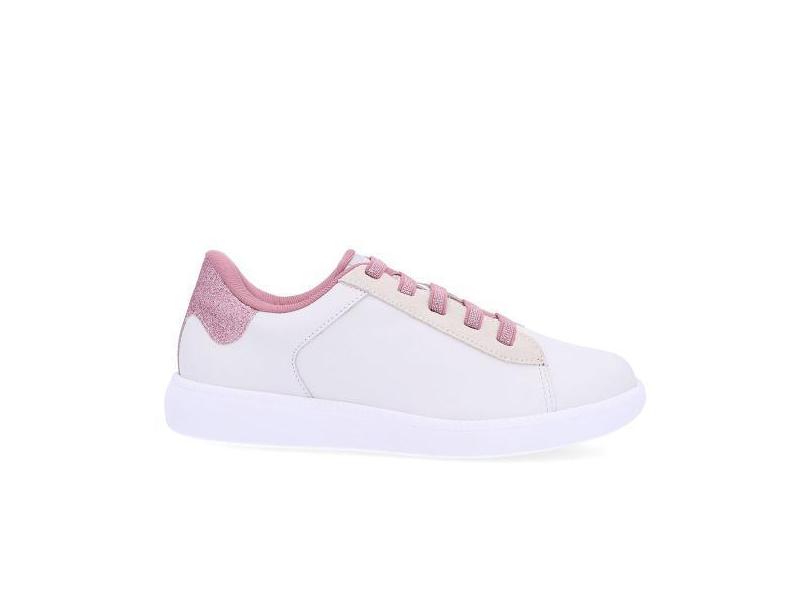 Tênis Casual Couro Branco Detalhe Rosa - Usaflex