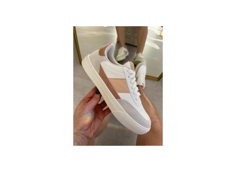 Tênis Casual Detalhe Cinza e Nude-Feminino