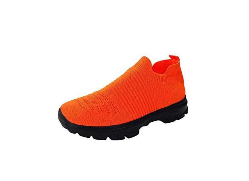 Tênis de corrida feminino, clássico, confortável, com arco grosso, confortável, casual, sem cadarço para mulheres, sapatos de lona, B - laranja, 36