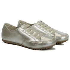 tênis De Couro Confortável Prata Metalizado Cconfortável Moda - Izabel