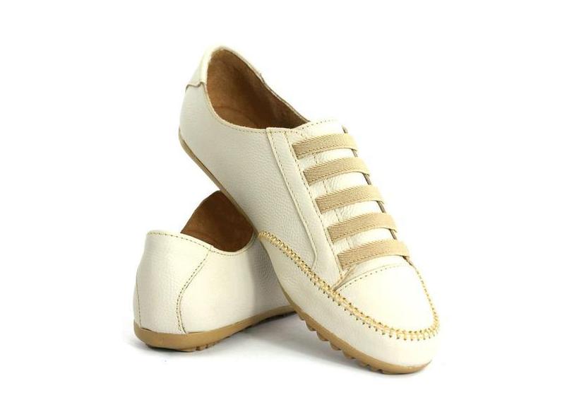 Tenis De Couro Feminino Mocatênis Casual Comfort Macio Leve Bege Maria