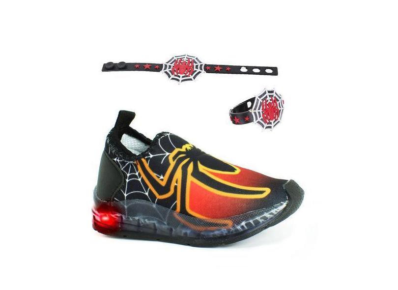 Tenis De Criança Do Aranha Luz Pisca Led Infantil De Menino + Pulseira